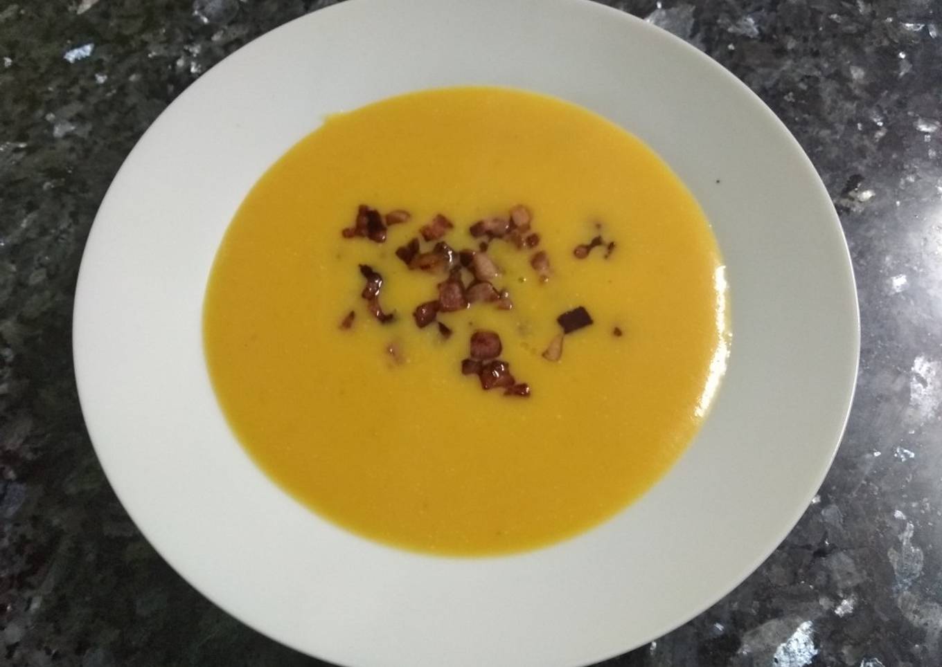 - Servimos la crema con los trocitos de bacon y a disfrutar