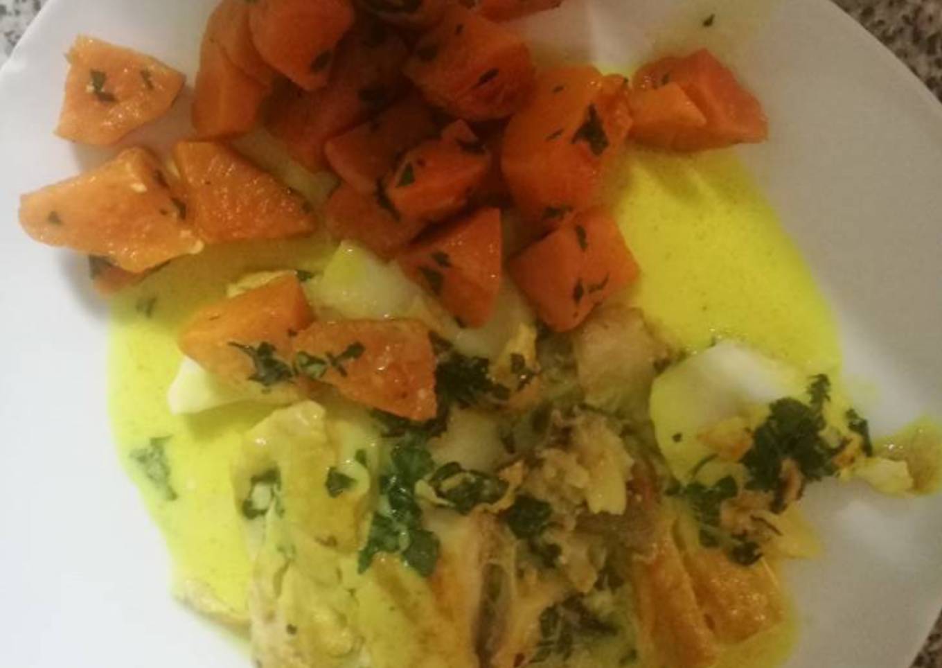 - Pasados esos 10 m añadir un bote de leche de coco una cucharada de cúrcuma y el picado de perejil y cilantro. Dejar 10 minutos más y listo. Riquísimo 😋